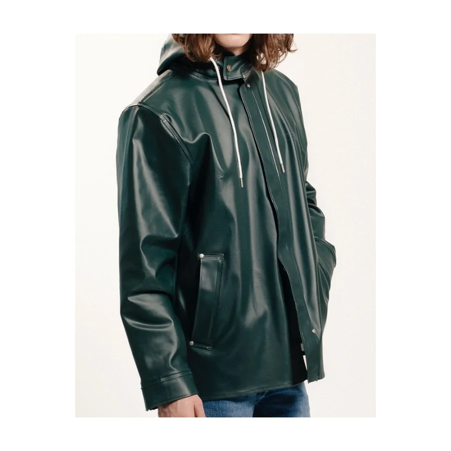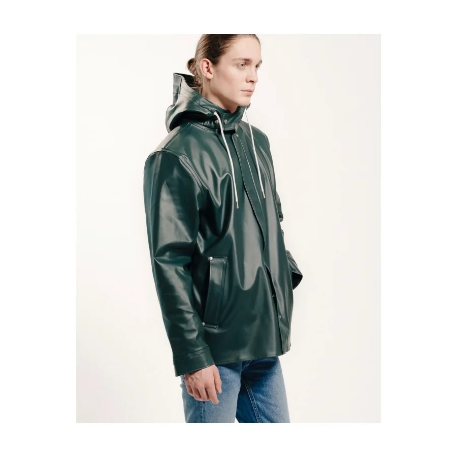 Fx. GRUNDÉNS ”Brigg 310 Originals” regnjakken, som har svejsede sømme, justerbar hætte med snøre, dobbeltknappet front med skjulte tryklåsknapper, justerbar manchet med fløjls foer og trykknap justering.
