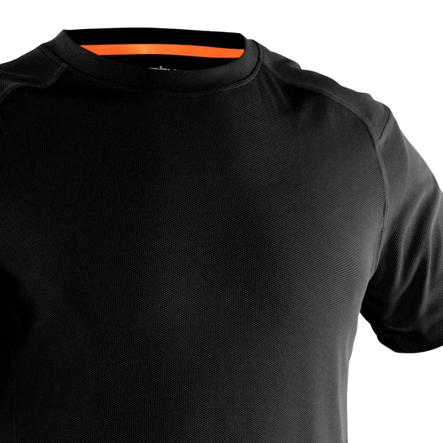 GRUNDÉNS "Axmar 006" T-shirt BLACK with perfect fit and high comfort. GRUNDÉNS "Axmar 006" T-shirt is manufactured of soft and flexible Polyester / bamboo / Elastane, which insulates, absorbs, neutralizes and transports sweat away and make the T-shirt feel soft and clean against the skin even after many hours of work. GRUNDÉNS "Axmar 006" T-shirt is REGULAR form-fitted and has "flat" seams that do not bother. Available in size XS-3XL.